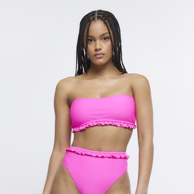 Pink Frill Bandeau Bikini Top River Island Very well made.