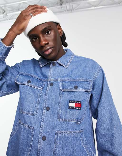Giacche Tommy Jeans Recycled Denim Logo Embroidery Worker Jacket Very well made.