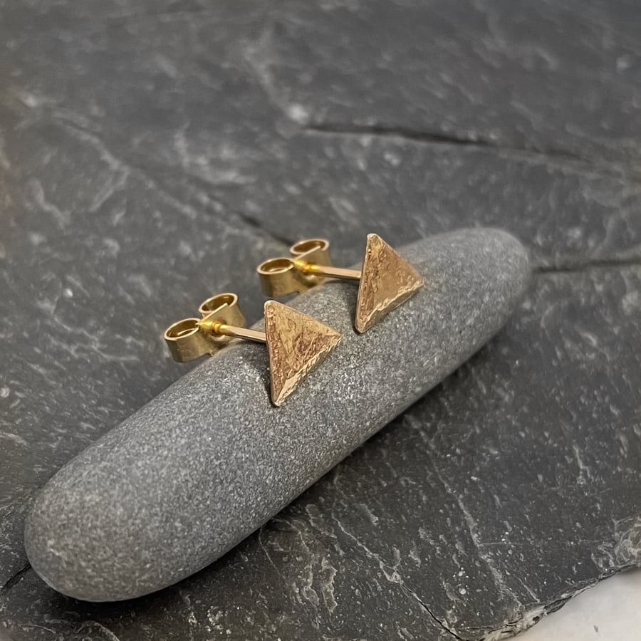 Gold triangle stud earrings 9ct hallmarked Folksy Very well made.