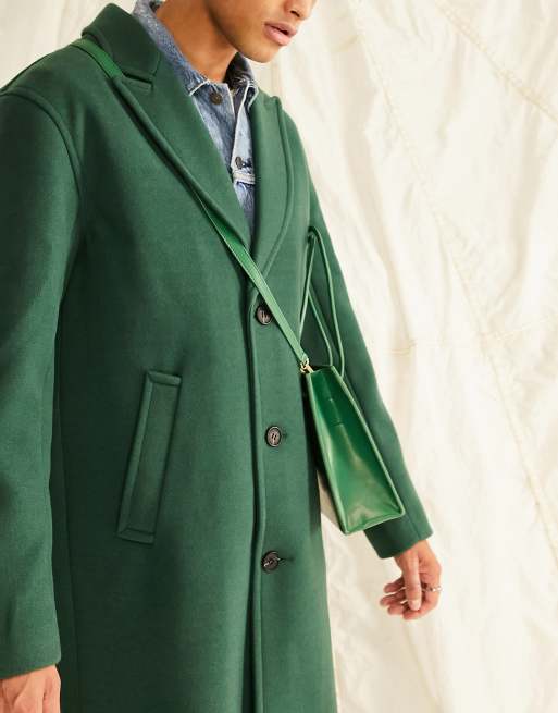 ASOS DESIGN relaxed fit wool look overcoat in green Very well made.