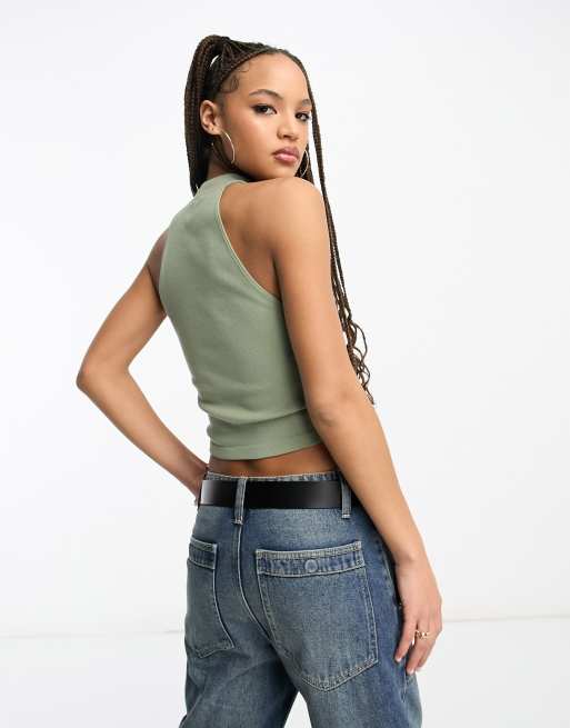 Stradivarius seamless rib high neck tank top in khaki Very well made.