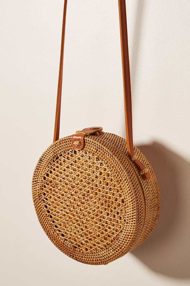 Circular Vegan Leather and Rattan Bag Anthropologie Singapore Very well made.