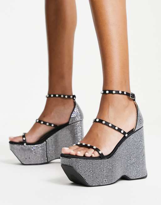 Azalea Wang Lizzy Sandali con zeppe con strass neri e argento Very well made.