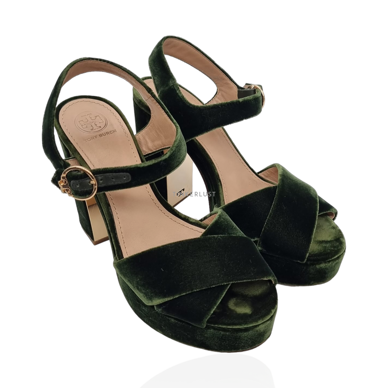 sepatu heels Tory Burch Loretta Banana Leaf Velvet Pump Heels Very well made.