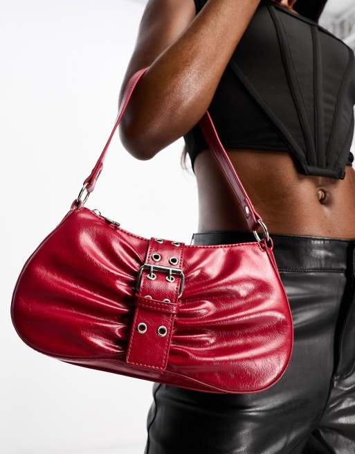 ASOS DESIGN ruched buckle detailing shoulder bag in red ASOS Very well made.