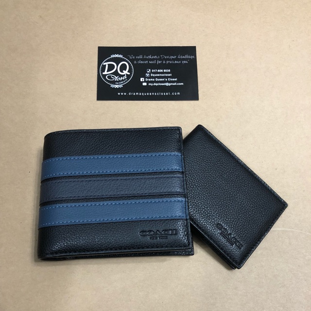 Coach 3 In 1 Men Wallet With Varsity Stripe In Signature Blue Pre Very well made.