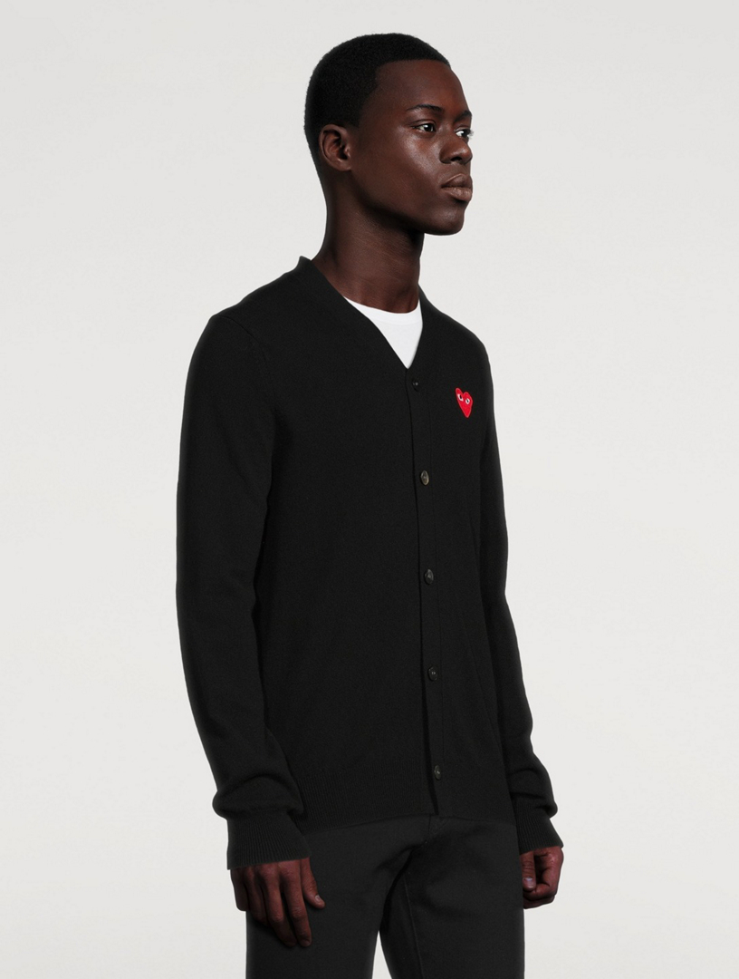 COMME des GAR ONS PLAY Navy Red Heart Patch Cardigan SSENSE Very well made.
