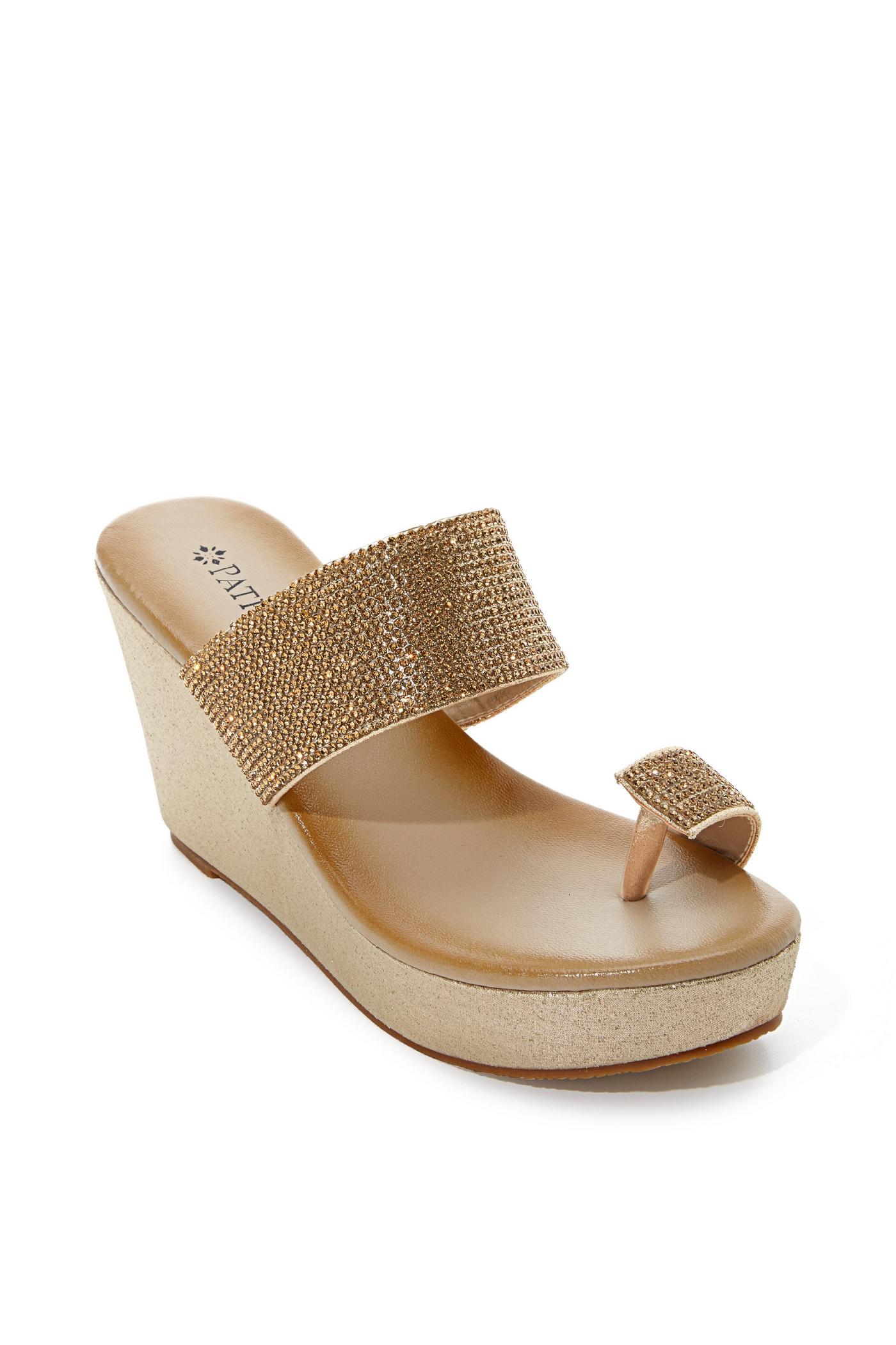 Gold Embellished Toe Ring Wedge Sandal Gold Boston Proper Very well made.