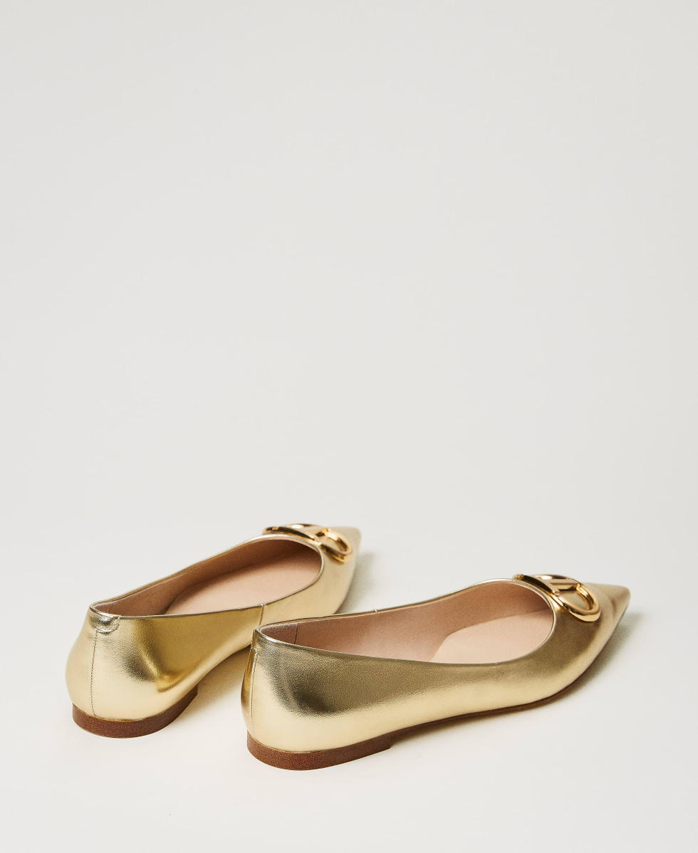 Ballerine in pelle laminata con Oval T Donna Oro TWINSET Milano Very well made.