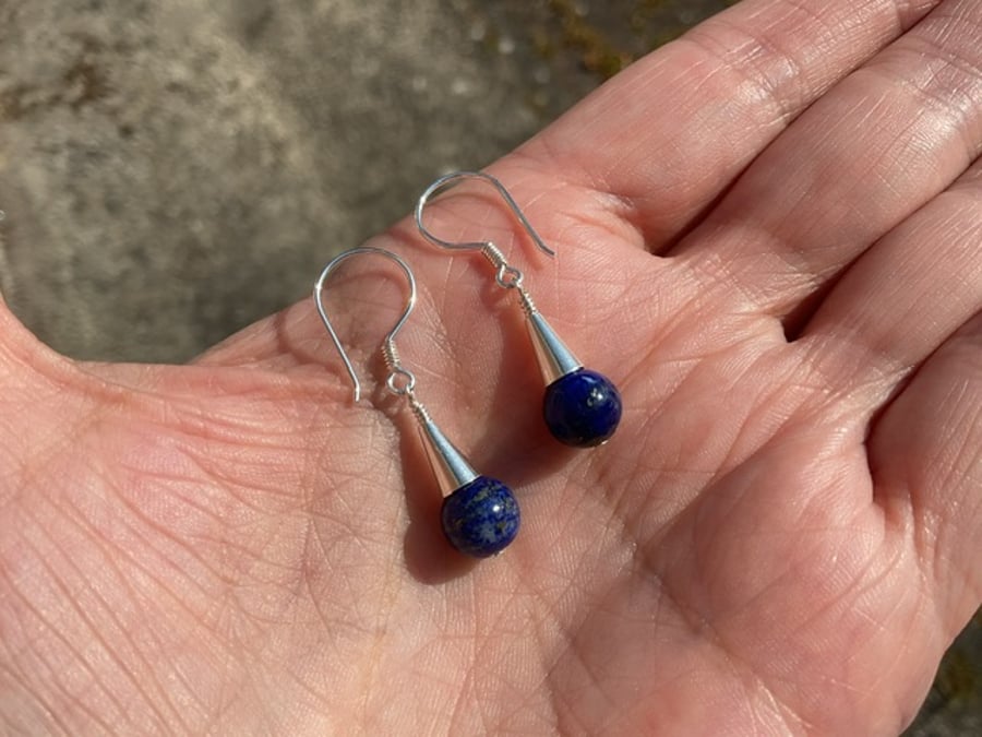 Lapis Lazuli Sterling silver dainty cone drop e Folksy Very well made.