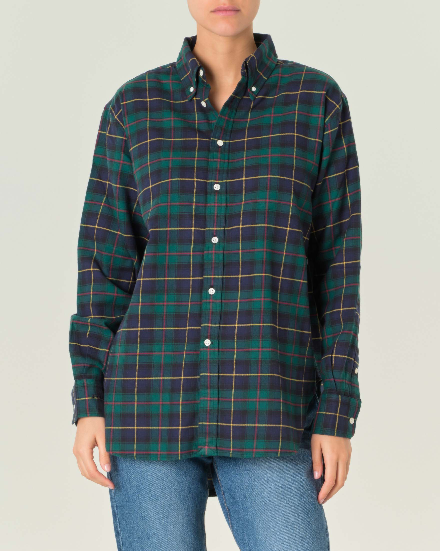 Camicia in cotone verde scuro a fantasia tartan blu e giallo Very well made.