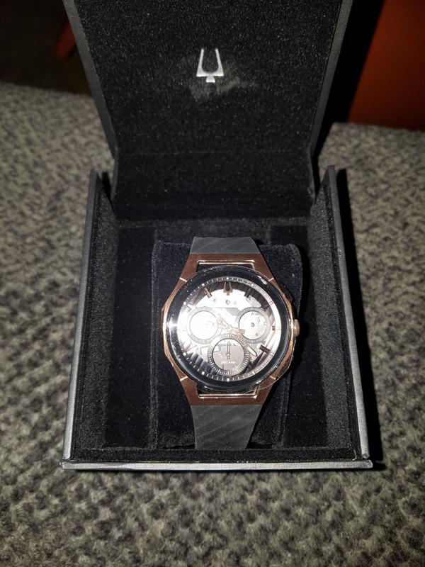 Bulova 98A185 Curv Rose Gold Tone Case Chronograph Men s Watch Very well made.